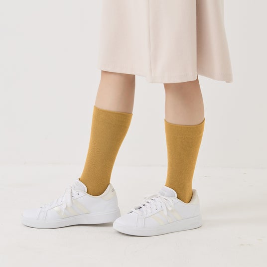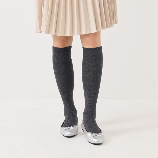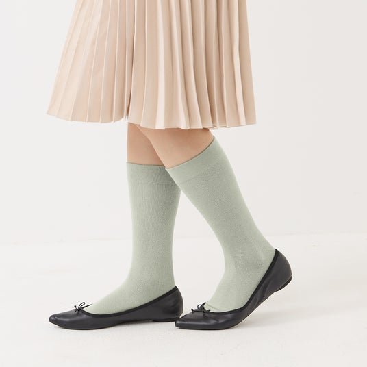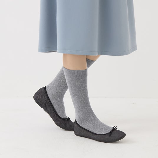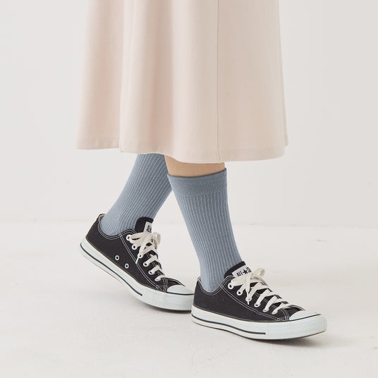 パンプスやローファーもすっきり履けて、きれいめコーディネートも楽しめる薄手の無地タイプと、スニーカーやブーツなどカジュアルな靴にもぴったりのリブタイプの2タイプ