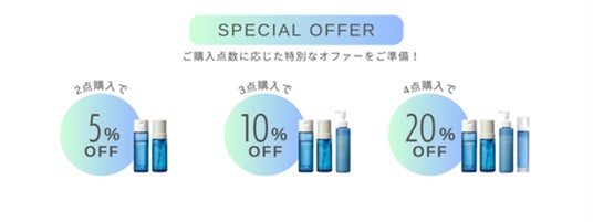 商品のご購入点数に応じて割引率がアップします。4点だと20%OFFでご購入いただけます。