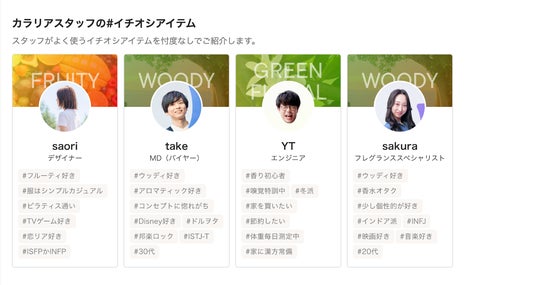 サービス開始から5年が経過しSNS(Instagram、TikTok、X)の総フォロワーは48万人超え(2024年8月時点)、香りの専門メディア「カラリアマガジン」の月間PVは約150万。また、会員数は75万人超えと多くの方に支持をいただいております。