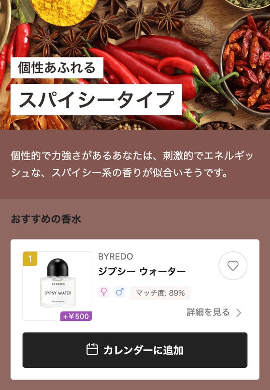 「診断結果でおすすめされた香水が気になっていた商品と一致したので参考になった」