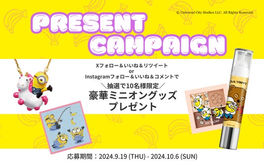 レブロン株式会社は、大人気「ミニオン」とコラボレーションしたアイテムを2024年9月19日(木)に数量限定で発売いたします。この発売を記念して、レブロン公式SNS(X/Instagram)にて、豪華なミニオングッズが当たるプレゼントキャンペーンを実施いたします。