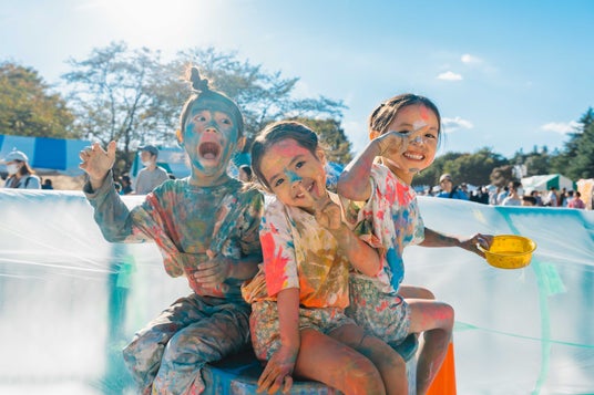 親子で笑顔あふれる想い出づくり「絵の具であそぼう」形にとらわれず、手足や全身を使い、絵の具の感触を楽しみながら自由に絵を描いて遊ぶ「絵の具であそぼう!」が今回も登場します。
