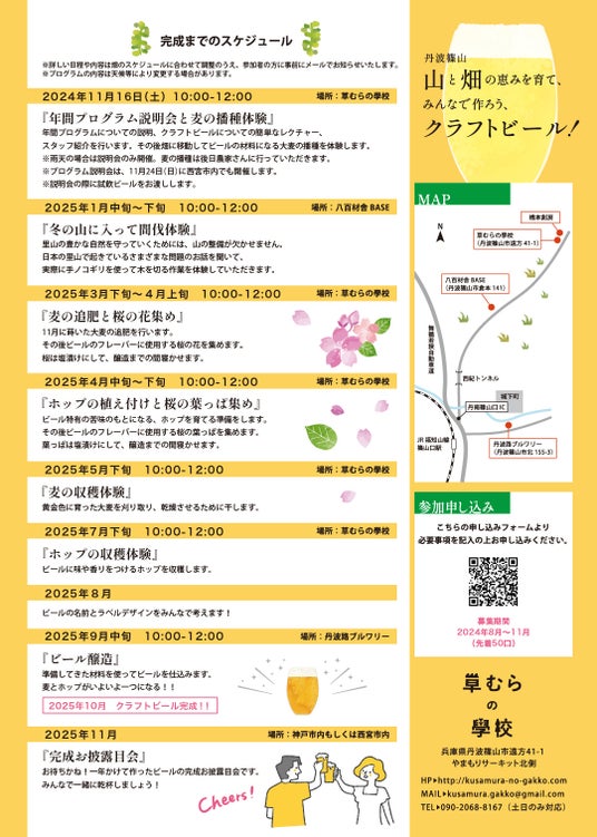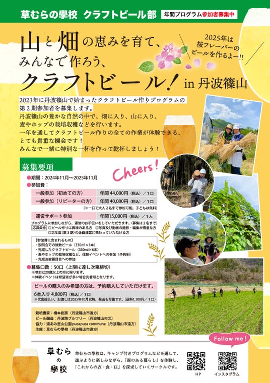 参加希望の方は以下詳細をご確認のうえ、草むらの學校ビール体験申し込みフォームよりお申し込みください。(募集期間2024年9月~11月)