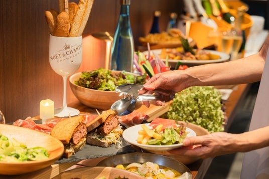 貸切のご予約をいただいた場合は、MIDTREE自慢の洋食をビュッフェスタイルでご提供させていただきます。しっかりと食べ応えのあるステーキから、スナック系の軽食までパーティーにぴったりな見た目も華やかなお食事がカウンターにずらりと並びます。