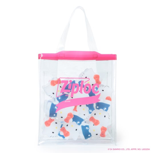 サンリオキャラクターズを『Ziploc(R)リボン』の中に詰め込み、PVCトートバックに落とし込んだアイテム。今年で50周年を迎えたハローキティを中心に、サンリオの10キャラクターとたくさんのハローキティが集まったデザイン2種類をご用意しています。前の姿はもちろん、可愛い後ろ姿にもご注目ください。