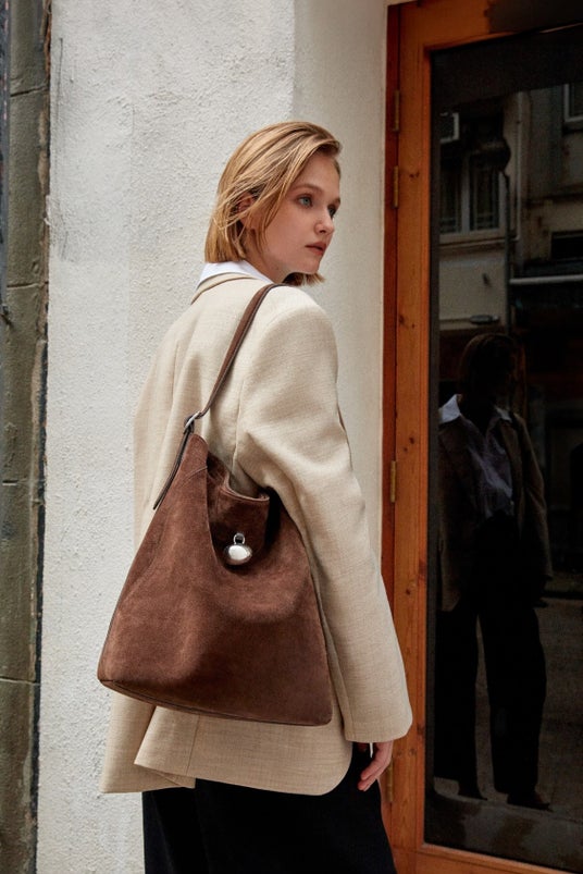 Stance Wallet と Drop Hobo の 2 スタイルは、寒い季節のスタイルに取り入れたくなるスエードレザーを使用し、秋冬を感じるような贅沢な手触りで仕上げました。そんなスエードのバッグをコーディネートに投入するだけで、季節感を引き出してくれます。