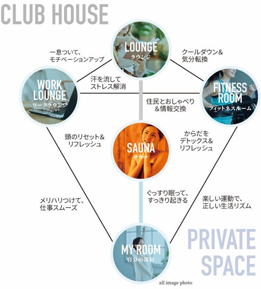 さらに、様々な効能があると言われるサウナを多彩な共用部と組み合わせることで、相乗効果を狙い、こころとからだを満たすウェルビーイングな住まいを提案します。サウナは、サウナクリエイティブ集団[TTNE]の主宰を務める“サウナ師匠”こと秋山大輔氏が監修。