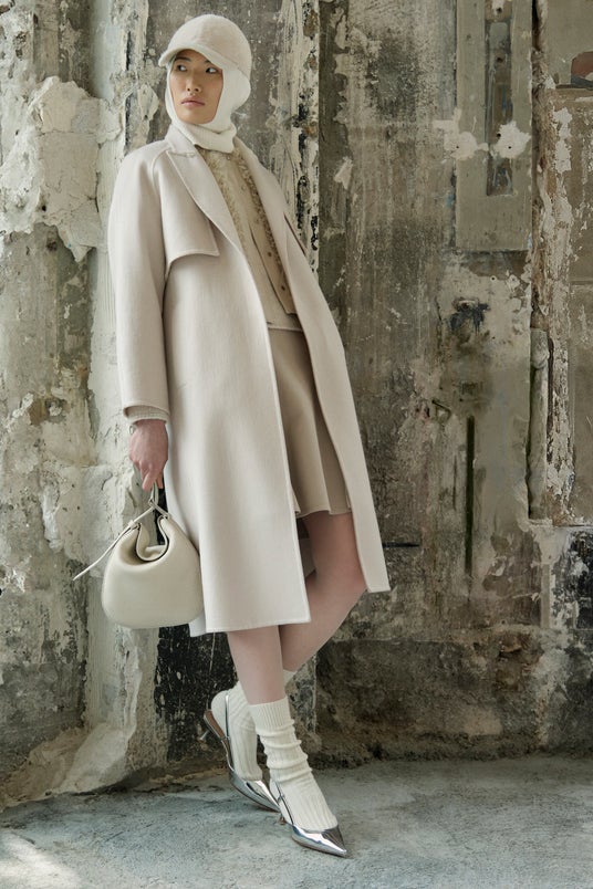 アクリスの初代3wayコートは、2022年秋にキャメルカラーで日本限定発売されたものでした。当時、完売する店舗が続出しそのシーズンのベストセラーになったことがきっかけで、グローバルでも展開することが決定。2024年秋冬コレクションにて「The Duo Coat(デュオ・コート)」という新たな名のもと、ウール素材に、グレージュ、ネイビー、ケールグリーンの3色で再登場しました。
