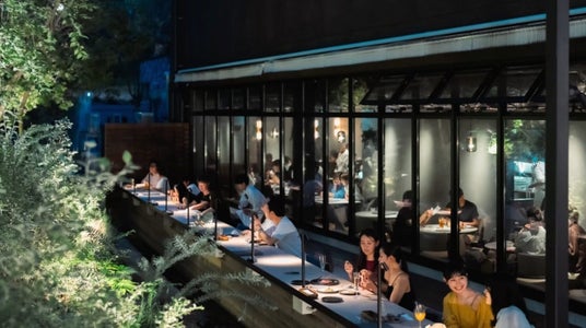 阪急大阪梅田駅からすぐの「魚イタリアン&オイスター 梅田ワーフ」は、 ビルの狭間にありながら緑が心地良く、都会のオアシスのようなロケーション。2024年3月に店舗がリニューアルし、ナチュラルとラグジュアリーが融合した、さらにおしゃれな空間へと進化しました。