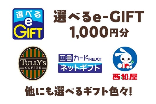 デジタルドリンクチケットなど10種類から選べる1,000円分のデジタルギフトをプレゼント。