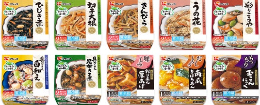 副菜として1品加えることで、偏りがちな栄養バランスを補うことが可能です。さらに、10種の豊富なレパートリーで、その日の食卓や気分に合わせてお選びいただけます。