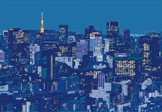 「光」として捉えられた丸シール。それらは本来の文房具としての役割を超越しユニークなアート作品を生み出すツールとなり、私たちに美しい夜景を、その一つ一つの灯りにある物語を想像させ届けてくれます。作品を鑑賞する位置により生まれる現実と、まるで写真であるかのような「リアルな虚構」に私たちは夢中となり、作品へ近づいたり遠ざかったり―この没入感こそが大村雪乃の魔法、「シールアート」の世界です。