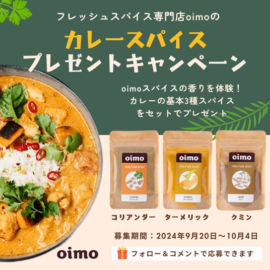 フレッシュスパイス専門店のoimoは、oimoの新鮮なスパイスの香りを体験していただけるキャンペーンを実施します!