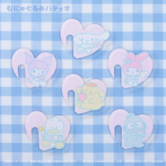 このシリーズでは、ポムポムプリン・ハンギョドン・シナモロール・クロミ・マイメロディ・あひるのペックルのキャラクターたちがラインナップされています。