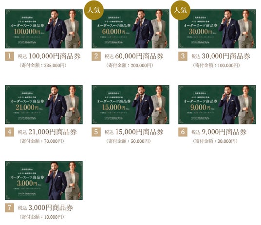 返礼品『グローバルスタイルの商品券』が大人気!グローバルスタイルの商品券をご用意