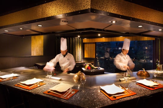 ズワイガニ、のどぐろ、輪島ふぐ、甘海老などの海幸、能登牛、加賀野菜、合鴨の治部煮などを、加賀会席と本格的な鉄板焼でご賞味いただけます。