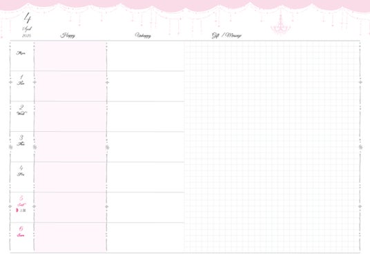 『お姫さま手帳』は、「可愛く」「優しく」「品よく」生きることを叶える魔法の手帳。書くたびに自己肯定感が高まり、明日の私に自信を与えてくれます。