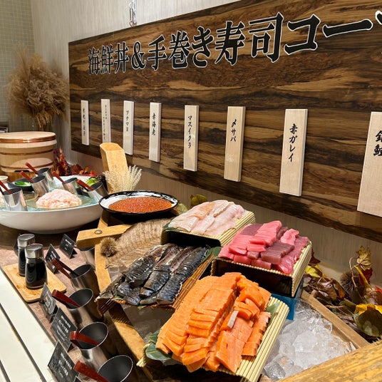 秋の和食コーナーでは、旬の天ぷらやきのこそばをはじめ、今季から新たに海鮮丼コーナーをご用意しております!