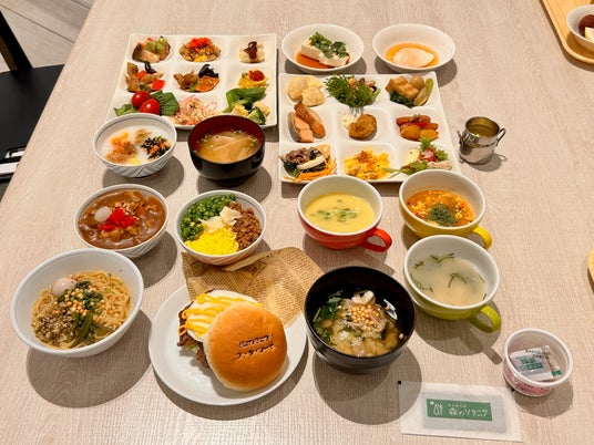 実演コーナーにて『焼肉バーガー』『ホッキ出汁のベビーホタテ茶漬け』『朝の玄米茶ラーメン』が人気