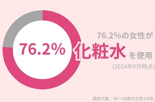 調査の結果、76.2%と大部分の女性が「化粧水」を使用していることがわかりました。