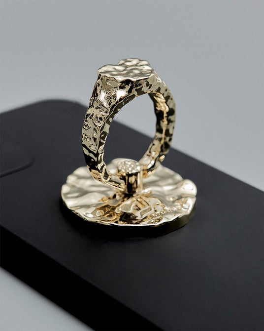 溶けたような不規則なテクスチャーが魅力であり、スタンドオイルならではのユニークなリングシェイプを自慢します。360度回転が可能で好きな角度に合わせ使用ができ、強い接着力の3Mテープを使用し、携帯電話スタンドとしても活用できるアイテムです。「ハートメルティンググリップリング」で手元に高潔さを添えてみてください。
