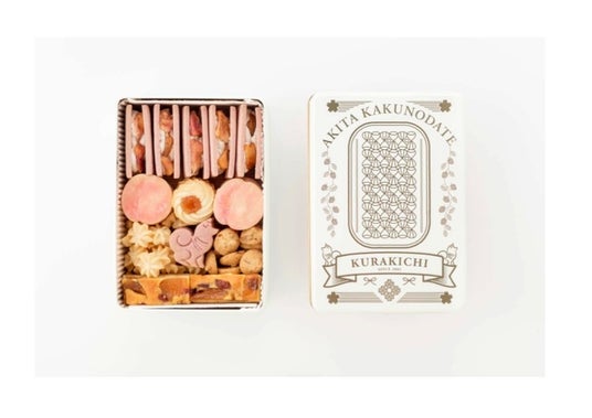 新たなウィッチやパウンドケーキをはじめ、あきたフランボワーズミニョンヌが練り込まれた可愛らしい秋田犬クッキー、ちりばめられた星型クッキーや、ジャムクッキーも彩り豊かに揃い、視覚的印象からも楽しめるクッキー缶といたしました。KURAKICHI あきた フルーツ クッキー缶(あきた北限の桃アソート)をぜひお楽しみくださいませ。当社クッキー缶より多くの方に秋田の魅力を感じていただけるよう想いを込めお届けいたします。