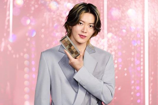 今回のビジュアルテーマは、“BACK STAGE with 3CE”。まばゆいスポットライトを浴びる舞台へ向かう、その瞬間の高揚感を、ブランドを象徴するアイテムの一つである「ニューテイク アイシャドウパレット」のキラめきが彩ります。12色もの魅惑的なカラーが織りなす無限の可能性は、まるで星屑が散りばめられたような輝きを放ち、YUTAさんの表情をドラマティックに演出します。 “BACK STAGE”から踏み出し、共に「新たなステージ」へと歩み出す両者が織りなす、高揚感と洗練された世界観に、どうぞご期待ください。