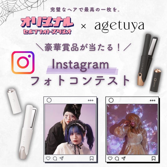 株式会社キャラット(本社:奈良県香芝市、代表取締役社長:佐野隆之)が運営するセルフ写真館「Original self photostudio(オリジナルセルフフォトスタジオ、以下Original)」は、イクスピアリ店にて、株式会社ローネジャパンが展開するヘアアイロンブランド「agetuya(アゲツヤ)」とコラボし、ハロウィンシーズンの仮装でセルフ写真を撮る際のヘアスタイリングに、累計出荷2,760,000本(※)のagetuya製品から、ストレートアイロンやカールアイロンを使用できるキャンペーンを2024年10月1日(火)から11月10日(日)まで実施いたします。