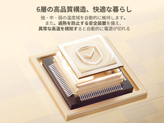 1.しっかりとした6層構造により、速熱性と保温性に優れ、安全性も高めています。やけどしにくい表面温度設計で、安心してご使用いただけます。