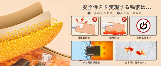 「水と電気」を完全に分離し、水漏れや漏電の心配がありません。火傷を防ぎ、ユーザーの安全を守ります。
