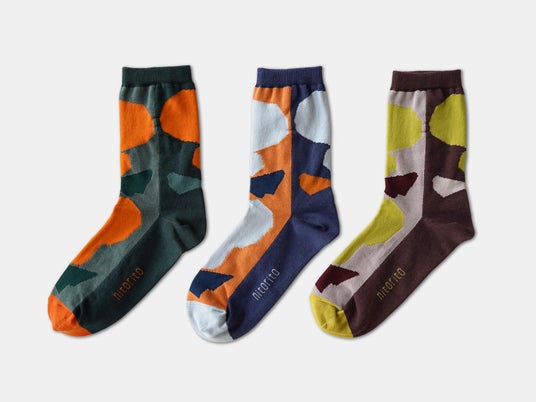 カラー:オレンジ・ブルー・イエロー | サイズ:23-26cm | 素材:綿75%・ナイロン20%・ポリウレタン5%