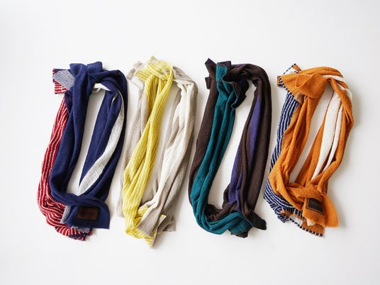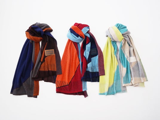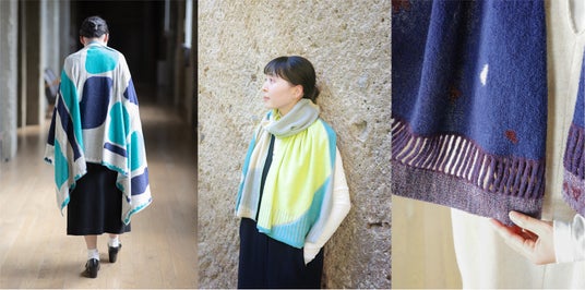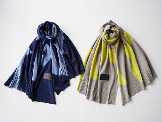 そしてこの度、2024年秋冬コレクションでは、ストール11点、靴下3点、ハンカチ2点が新たにラインナップします。屋根に降り積もる雪や、山形県を象徴する花でもある紅花などをモチーフに、米沢で目にする日常の原風景をnitoritoらしいカラフルな色使いでモダンに表現。秋冬のコーディネートを華やかに彩ります。また、ハサミでカットして自分好みにアレンジできるnitoritoの定番ストールからも新作が登場。フリンジをカットしたり、ポンチョのようにアレンジしたり、お好きな着方をお楽しみください。