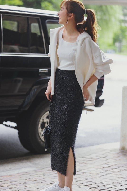彼と初めてのドライブデート。ゆったりパーカ×ニットスカートでリラクシーに。