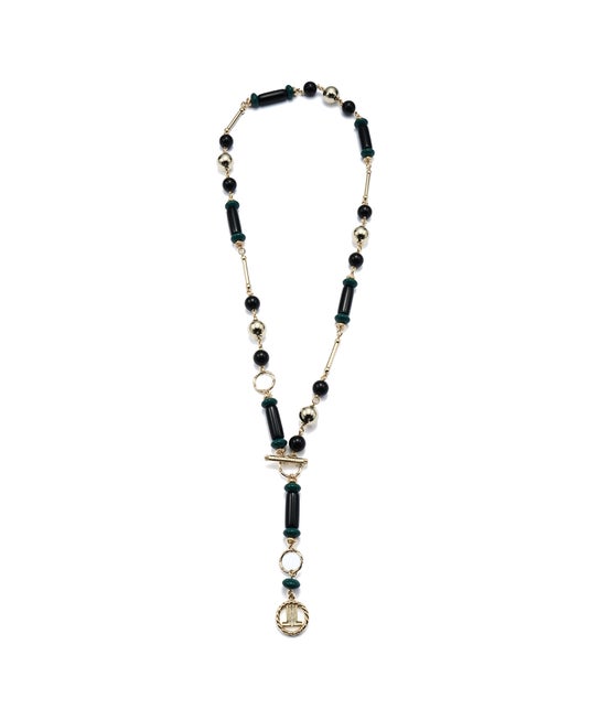 ロングネックレスは留め具の位置を変えてU字ネックレスとしても着用できる2way仕様。