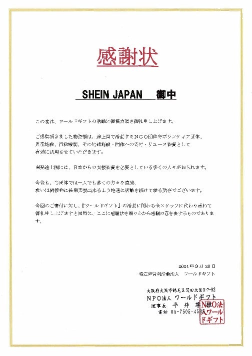 そして、第3弾は10月1日(火)より開催することが決定いたしました。9月24日(火)より、SHEIN公式サイトの特設ページにて、キャンペーンの参加を募集いたします。参加いただいたみなさまには、寄付いただいた洋服の点数分、SHEINのアイテムをプレゼントいたします。ぜひこの機会に足を運んでみてはいかがでしょうか。