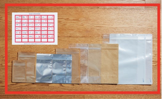 「防災が学べる 12袋の非常用持ち出し袋」は、家族みんなで防災グッズを準備するための大小さまざまな材質の12袋のジッパー付き袋と、備えるべき防災グッズのシールが一緒になったアイテムです。