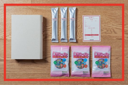 災害や停電による断水時の非常用トイレとして、トイレ内の棚などに備えておくアイテム。