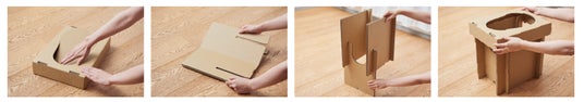 ダンボール製で、重さ約1.2kg、トイレのみでは700gと軽量で、誰でもどこにでも持ち運び可能です。