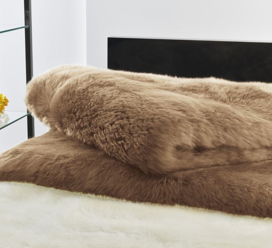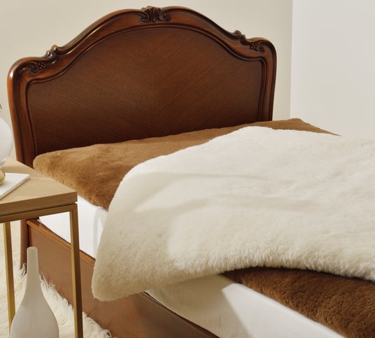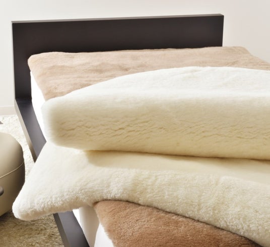 1 平方センチメートルにつき 3000~3300 本の羊毛が生えているムートン。カールした繊維が複雑に絡み合うことで、空気の層が形成され、保温効果を高めています。就寝時のヒヤッとした感覚がなく寒い時期でも暖かいのが特長。