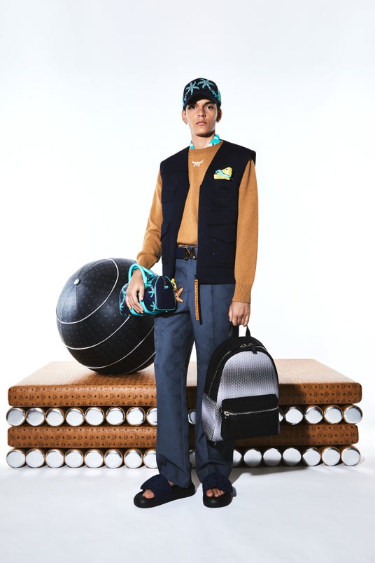 最後に「MCMビーチクラブ」では、ラフィア素材のモノグラムバッグやサングラス、サンダルが、完璧なビーチルックを完成させます。