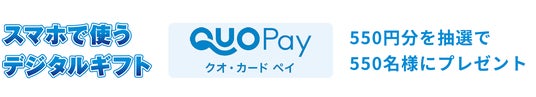 ※“QUOカードPay”は、スマートフォンの画面にバーコードを表示させて利用する前払式支払手段です。スマートフォン以外の携帯電話やパソコン、タブレットではお使いいただけません。また、発行から3年間の有効期限がございますのでご注意ください。“QUOカードPay”およびそれらのロゴは株式会社クオカードの登録商標です。