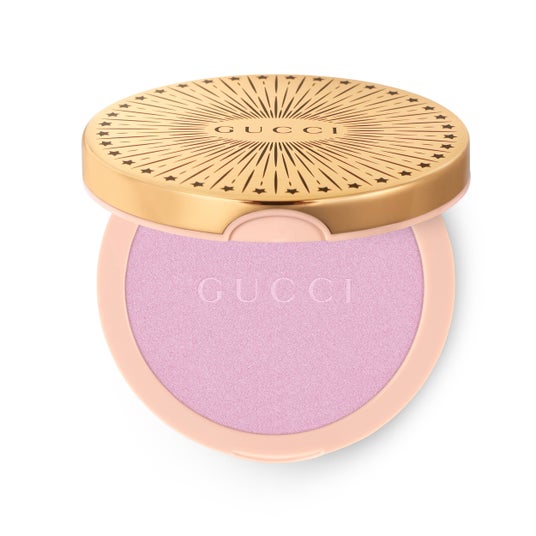 グッチ グロウ ハイライターは、スター&ラインのパターンで飾られたゴールドのラウンド型コンパクトに収められています。ハイライター本体はピンクのインナーケースにセットされ、コンパクトの内側には外出先でも使えるようにミラーが付いています。