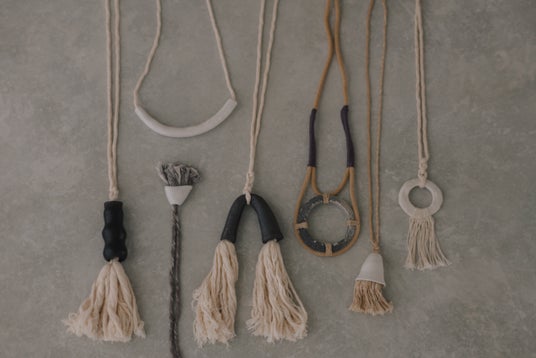 Profile : 陶器と合わせてアクセサリーを制作。紐やロープは栗イガ染め・土染め・みやこ染め。すべて色止めは焼ミョウバン。十人十色の言葉のように いろいろなつけかた いろいろな組み合わせ つける楽しみを自由にお洋服と合わせていただけますように。ブランド名に想いを込めて