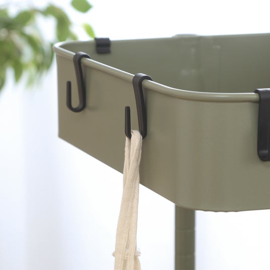 SNSではワゴンに別売りのフックを付けて収納場所を増やす方の投稿が多くみられました。フックにバッグをぶら下げたり、キッチンの布巾を掛けたりとフックを利用することで更に収納量を増やすことができます。