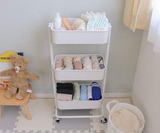 こどものいる家庭では赤ちゃんのお世話に必要なオムツや肌着などを集めた「ベビーワゴン」としての使い方や、幼稚園・保育園で必要なタオルやバッグなどを収納する使い方が多く見られました。