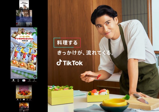 本WebCMには、賀来賢人が登場。本WebCMではTikTokに投稿されている、ひとりひとりの生活に役に立つ様々なジャンルの映像に賀来賢人が触れて、日常が豊かになっていく様子を、「きっかけが、流れてくる。」というキャッチコピーと合わせて表現しています。