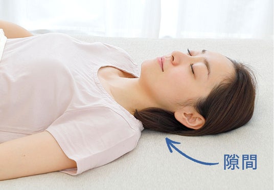 実は、身体に負担がかからない理想の寝姿勢を実現するには、ほとんどの場合「高い枕」は必要ありません。理想の寝姿勢は、まっすぐ立っているときの姿勢をそのまま横にしたものだといわれています。そのときに少し浮いてしまう頭部と首元を支えるのが枕の役目です。枕は、頭を持ち上げるためのものではなく、隙間を埋めるように支えるためのものなのです。