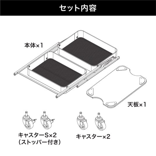 の3ステップですぐに使える2段ワゴンです。