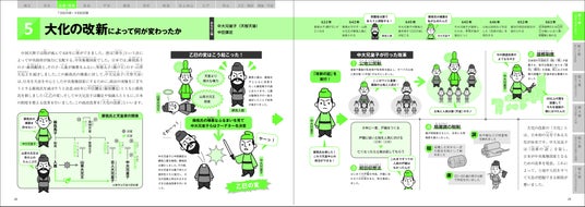 全面的にイラストを使い、日本史の重要トピックをひとつひとつわかりやすく解説しています。文字ばかりの日本史の本だと読みにくい、退屈だという人でも、楽しみながら学べる一冊になっています。