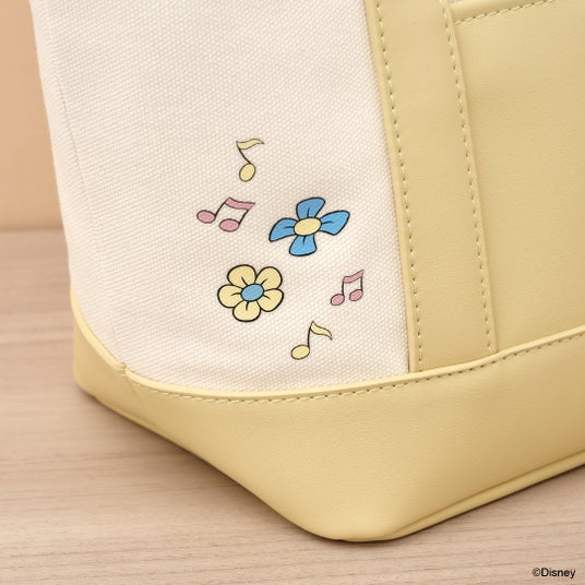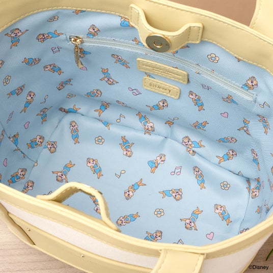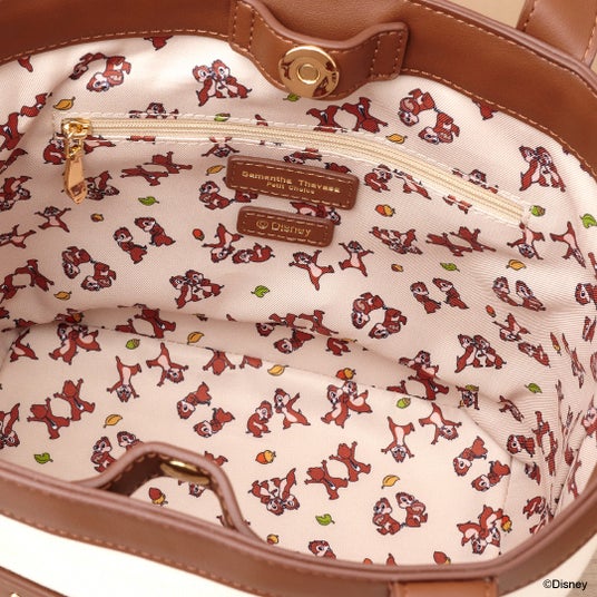 背面に「チップ」と「デール」の大好物のどんぐり、「クラリス」のカラフルな花と音符のモチーフがプリントしたこだわりが詰まったデザイン。裏地は総柄デザインで、中まで華やかに。